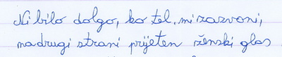 vljudno se zahvaljujem za Vaše prijazno pismo. Sporočam Vam, da v dvoje preživljava kar nekaj časa, dnevno sva večkrat na liniji, skupaj pohajava po naravi, po hribih, v soboto greva na celodnevni potep k morju in nato po Krasu, skupaj bova šla na koncert v Cankarjev dom v Ljubljano,.... skratka, mladi bi rekli, ''da se nama dogaja''.