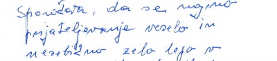 Sporočava, da se najino prijateljevanje veselo in nesebično zelo lepo v medsebojnih odnosih in spoštovanju ter razumevanju nadaljuje.