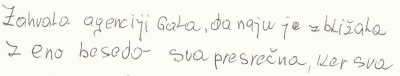 Najboljših in najlepših reči na svetu ne moremo videti, niti se dotakniti. Čutiti jih moramo s srcem. Zato se posebej lepo zahvaljujeva Agenciji Gala in seveda Vam ga. Mojca, ker se sicer verjetno nikoli ne bi srečala.
