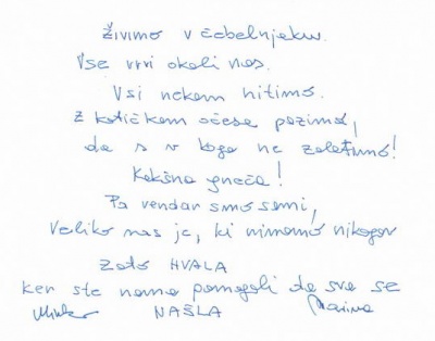 Še enkrat se Vam, spoštovana gospa Mojca, toplo in iskreno zahvaljujem za vse, kar ste dobrega naredili za mene!